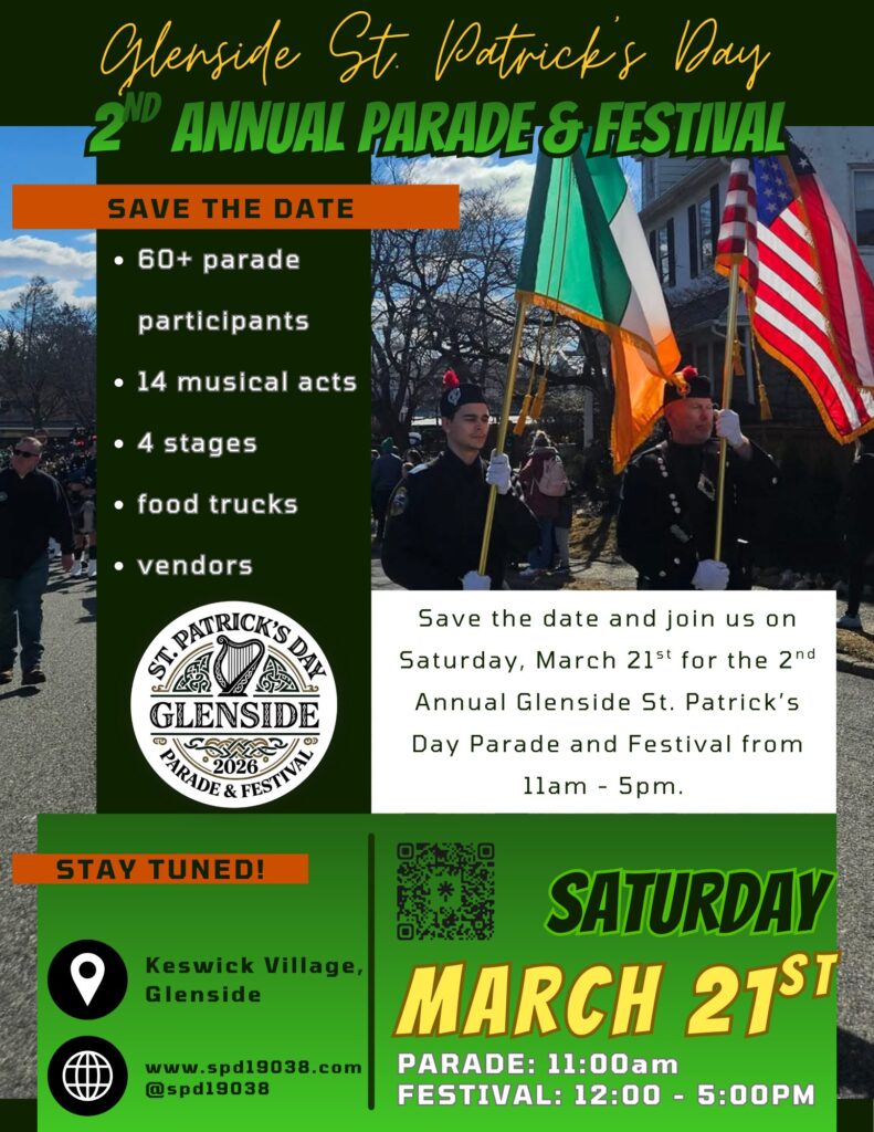 The Glenside Saint Patrick’s Day Association has released more details regarding the second annual Glenside St. Patrick’s Day Parade and Festival on Saturday, March 21.
