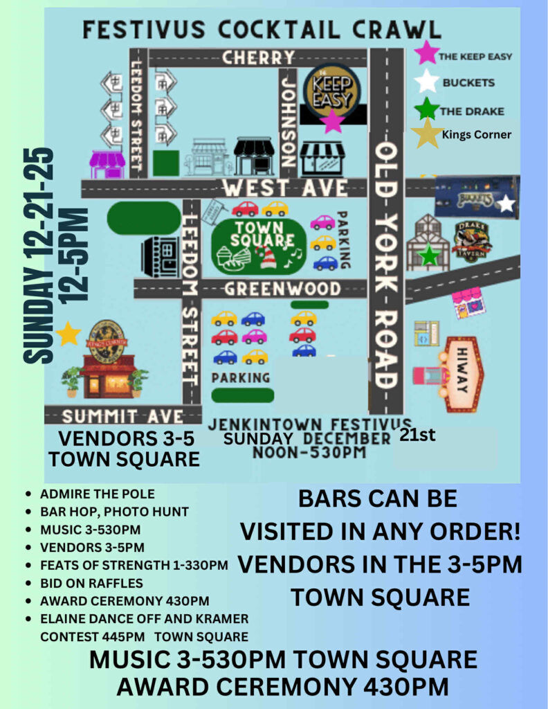 The third annual Festivus Cocktail Crawl is returning to Jenkintown on Sunday, December 21 from 12:00pm to 5:00pm.