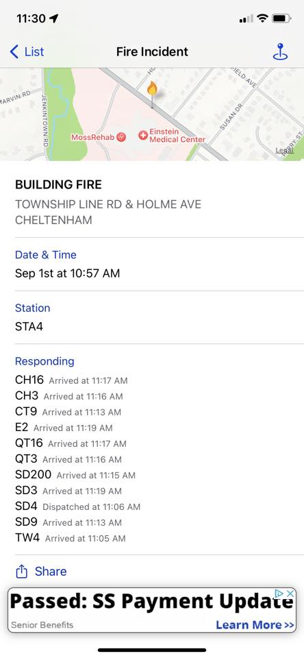 According to Emergency Alerts of Southeastern Pennsylvania, officials responded to a building fire at Moss Rehab, 60 Township Line Road in Elkins Park, on Friday, September 1.