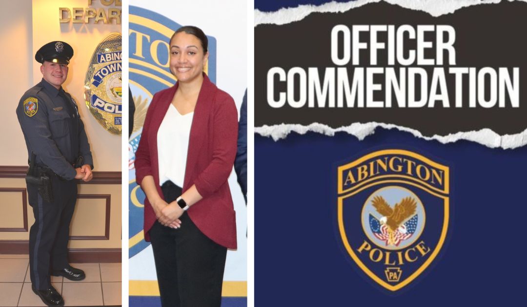 The Abington Township Police Department announced an officer commendation on behalf of officers Ryan Hasara and Janelle Hunt for their efforts in arresting a suspect on charges of narcotics and weapon offenses in July 2024.