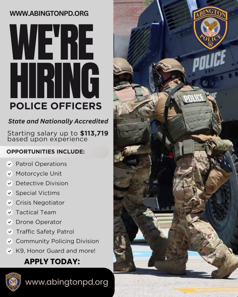 The Abington Township Police Department is hiring new officers.