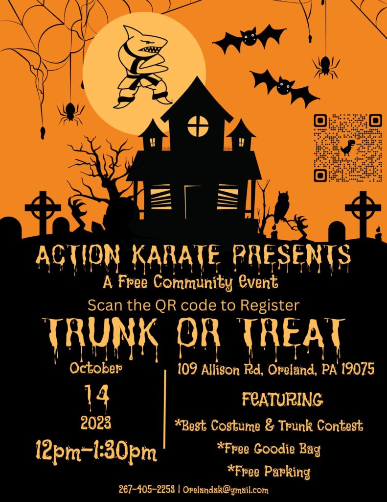 Action Karate Oreland will be hosting a Trunk or Treat event on Saturday, October 14 from 12:00pm – 1:30pm at 109 Allison Road.