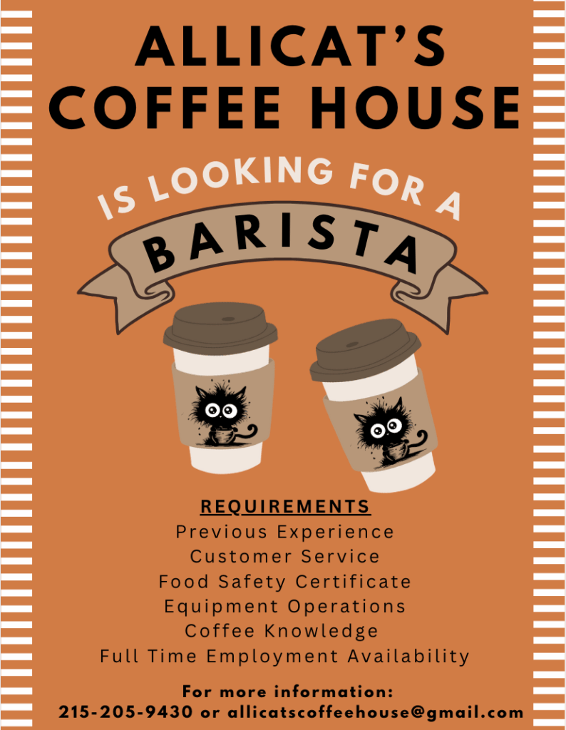 Allicat’s Coffee House, a new veteran-owned coffee shop at 920 Township Line Road in Elkins Park (Cheltenham Township), is hosting a grand opening on Saturday, November 29 from 6:00am – 2:00pm.
