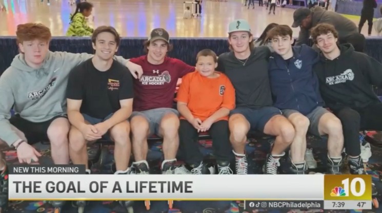 Arcadia University’s men’s ice hockey team was featured by NBC10 for welcoming Eli, an 11-year-old from Northeast Philadelphia who has a rare genetic disorder.