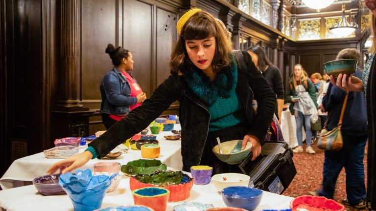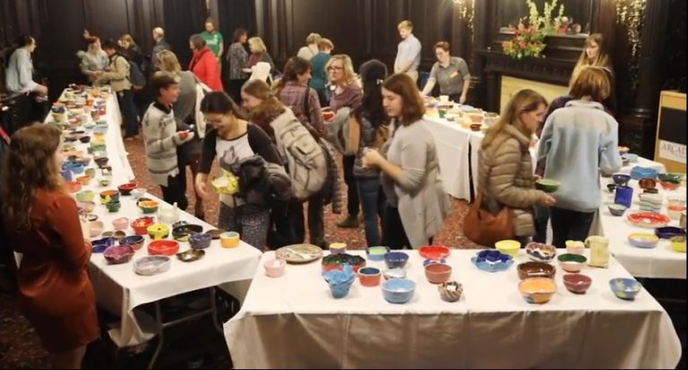 Empty Bowl is intended to draw attention to food insecurity. More than 1,000 ceramic bowls of all shapes, sizes, and colors are created by community members each year, and are used as soup bowls for dinner. The bowls can be taken home to serve as a reminder that for many people around the world, an empty bowl is the reality of their mealtime.