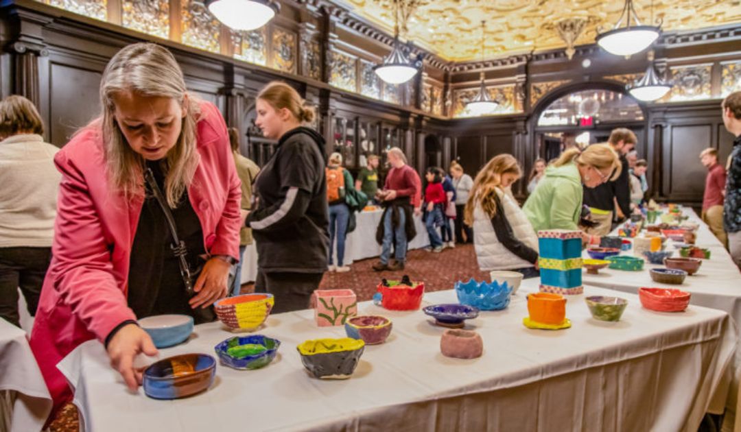 Empty Bowl is intended to draw attention to food insecurity. More than 1,000 ceramic bowls of all shapes, sizes, and colors are created by community members each year, and are used as soup bowls for dinner. The bowls can be taken home to serve as a reminder that for many people around the world, an empty bowl is the reality of their mealtime.