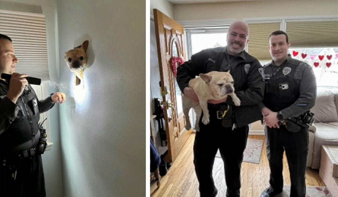 Tessa, a 7-year-old French bulldog who lives with a family in Upper Dublin, became stuck inside a second floor wall after falling through the floor of an attic last week, 6ABC reported.
