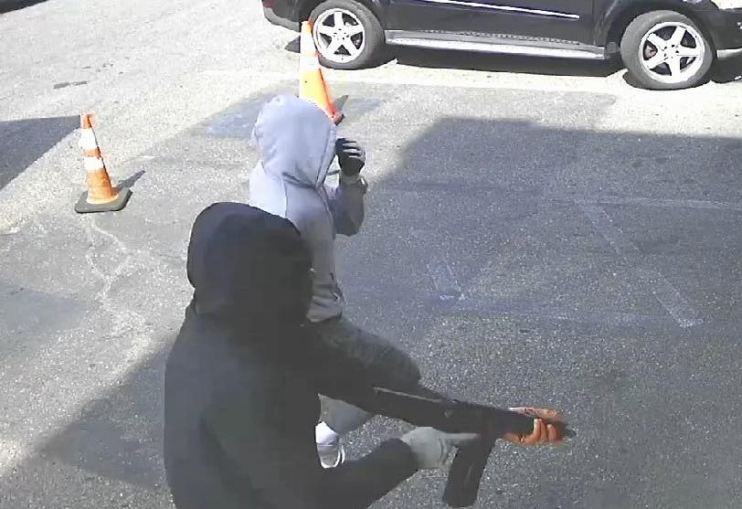“One male was armed with an AR15-style pistol (initially mis-identified by witnesses as an AK47), and the other was armed with a handgun,” police said, nothing that the suspects also took the armored car driver’s handgun during the robbery.