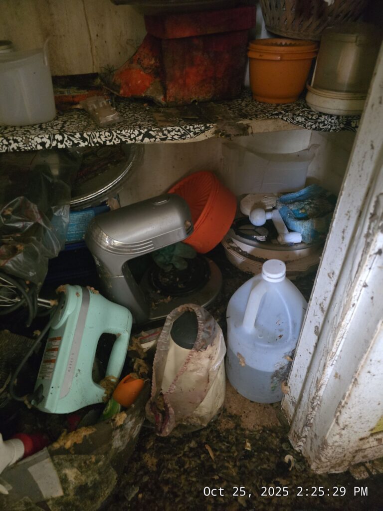“We used shovels to haul out a lot of stuff from various rooms. There was a pile of clothes that had mushrooms growing on them,” Chris said. “We don’t know if his insurance is going to cover it. I’m waiting for him to receive his policy documents which could bring some leverage from influential people to get him some coverage on the interior work. There’s mold throughout the home. He has a few rooms that are okay to be in, in the sense that they aren’t bad as other rooms.”