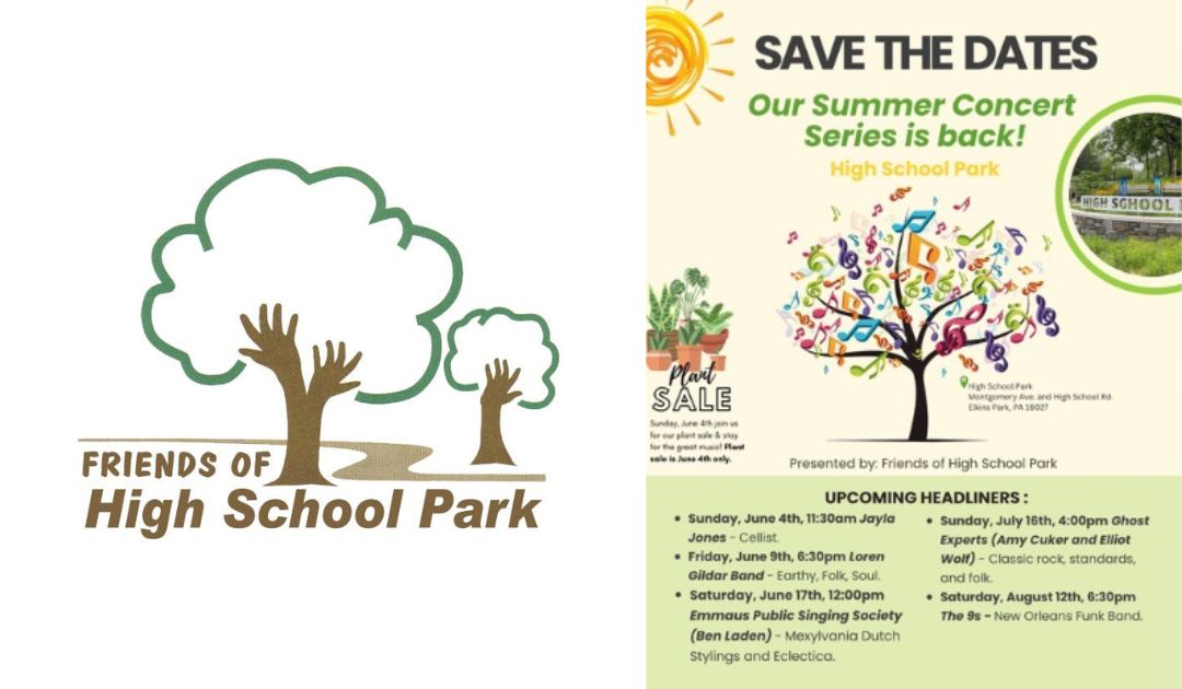 Cheltenham Township’s Friends of High Park will host a Plant Sale fundraiser event and the first of their summer concert series on Sunday, June 4 from 11:00am to 3:00pm at High School Park in Elkins Park.
