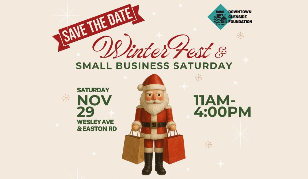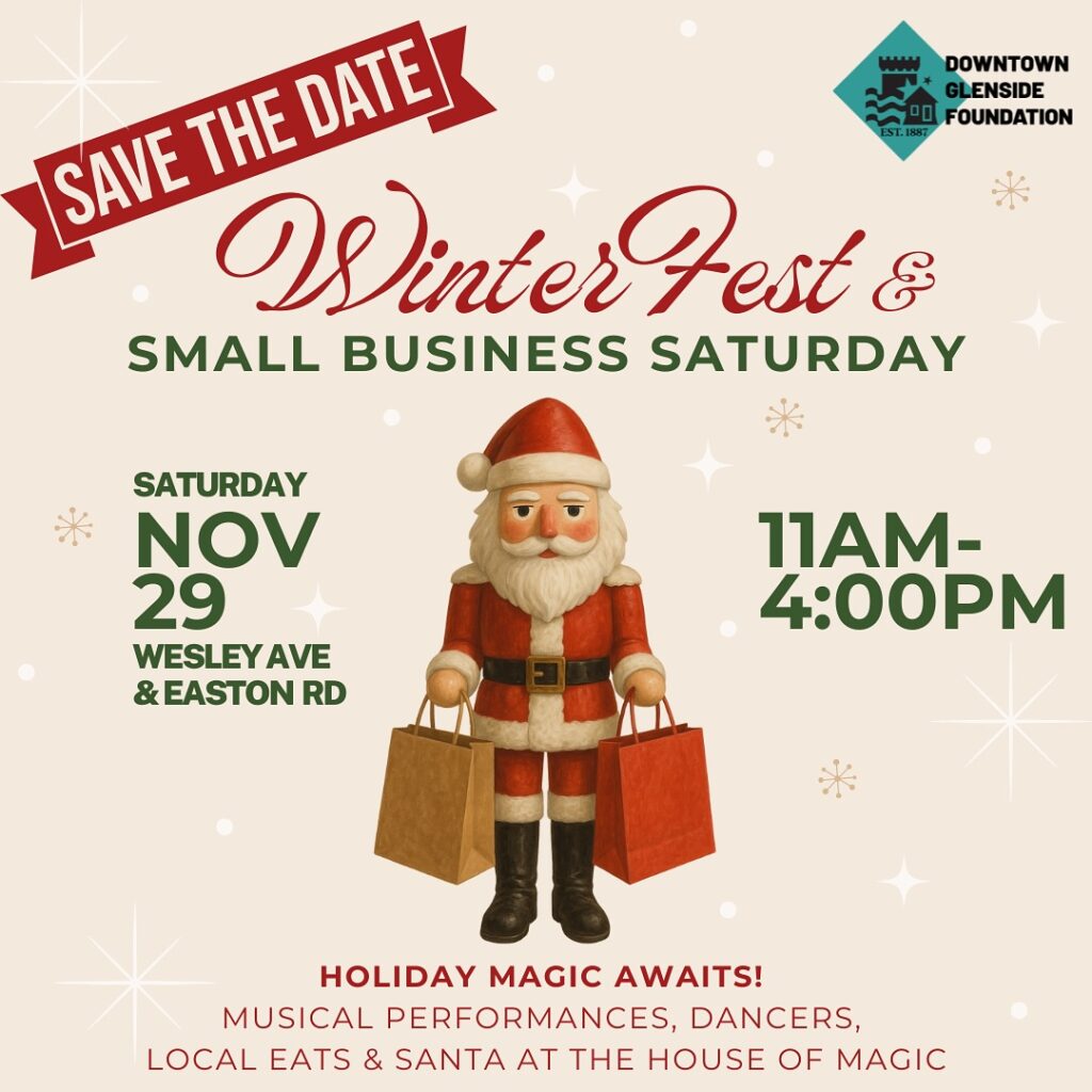 The Downtown Glenside Foundation will host its annual WinterFest & Small Business Saturday from 11:00am – 4:00pm on Saturday, November 29.