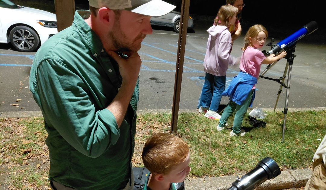 Later, the crowd made their way to High School Park, where the observation portion of the evening began. Several community-owned telescopes were set up, inviting guests to gaze up and see the moon in brilliant detail. Seeing its craters, shadows, and luminous glow sparked awe.