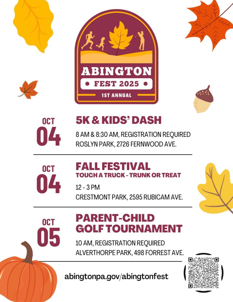 Abington Fest, a two-day community celebration, will take place on Friday, October 4, and Saturday, October 5.