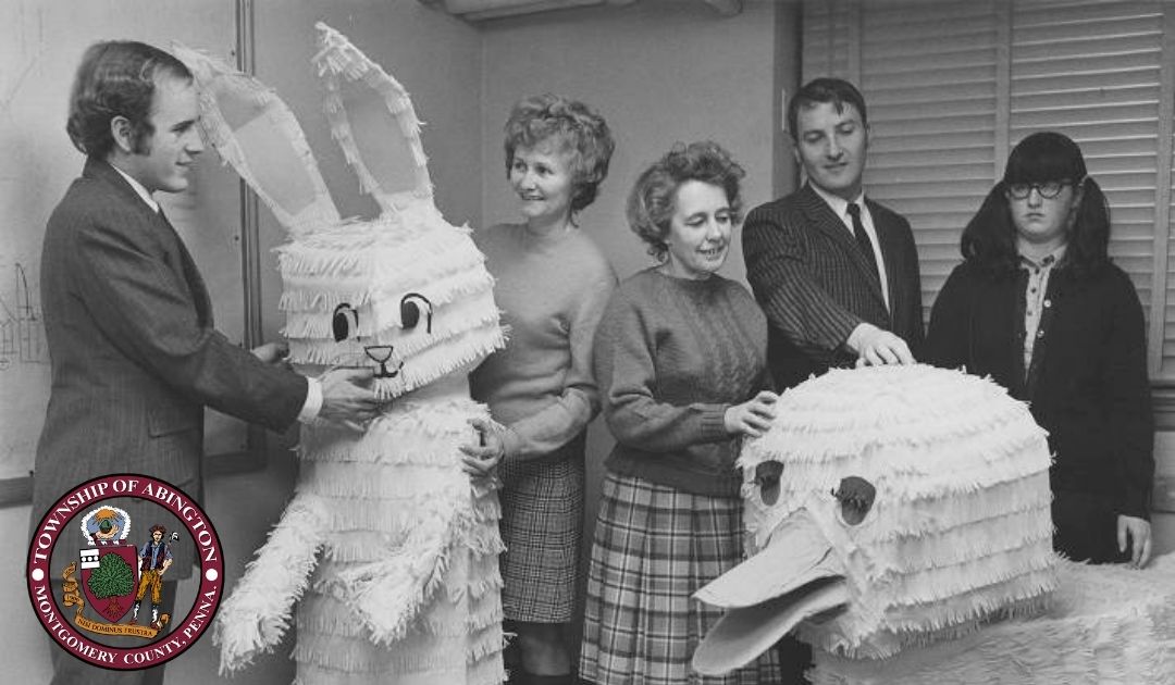 The above photo features members of the Abington Township Parks and Recreation Department preparing for the annual easter egg hunt. It was published in The Philadelphia Evening Bulletin in March 1971.