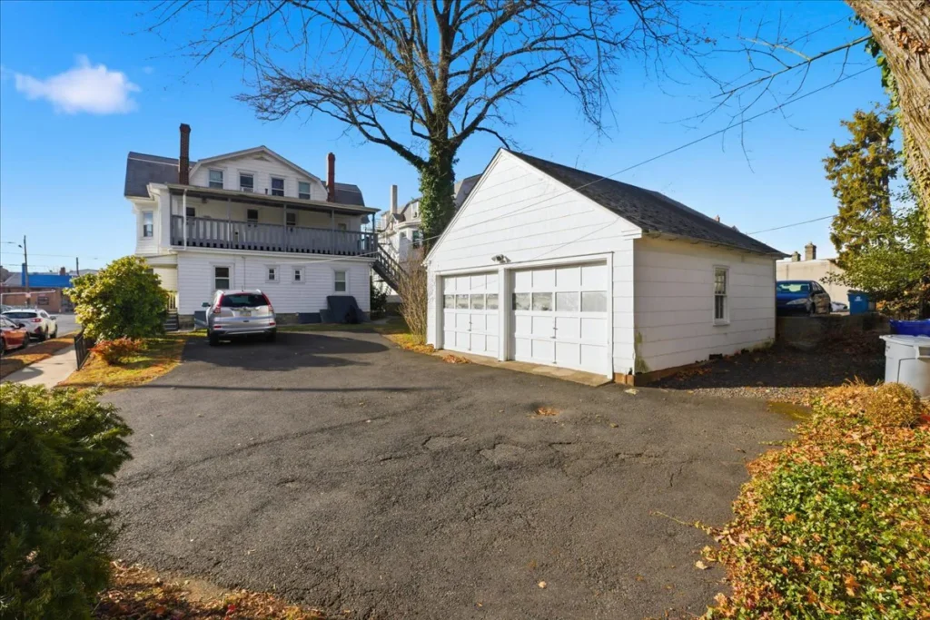 According to the listing, the property includes a four-unit quad plus a two-car garage, all with separate heat and utilities. Each unit has one off-street parking space in the driveway.