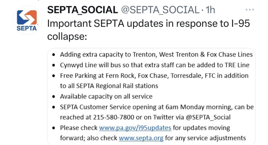 Alternates for 95 Collapse and Septa’s Plan