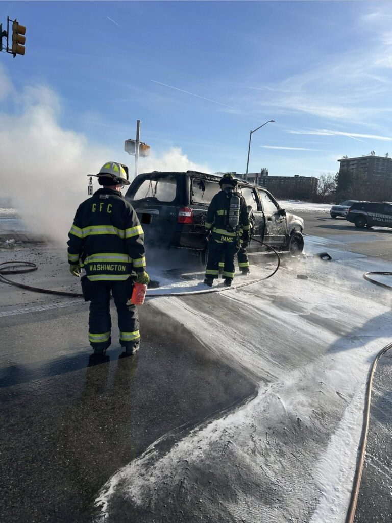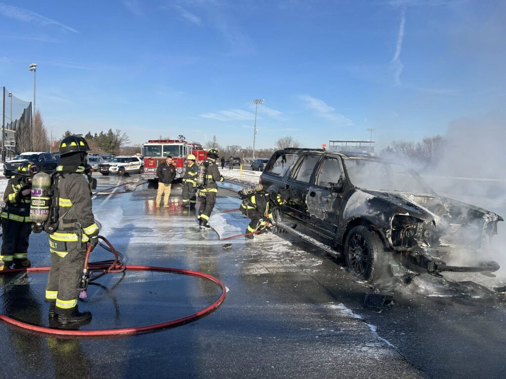 “The crews of Engine 1-1 and Engine 1 stretched 3 booster lines to extinguish the fully-involved SUV,” the company said in a post.