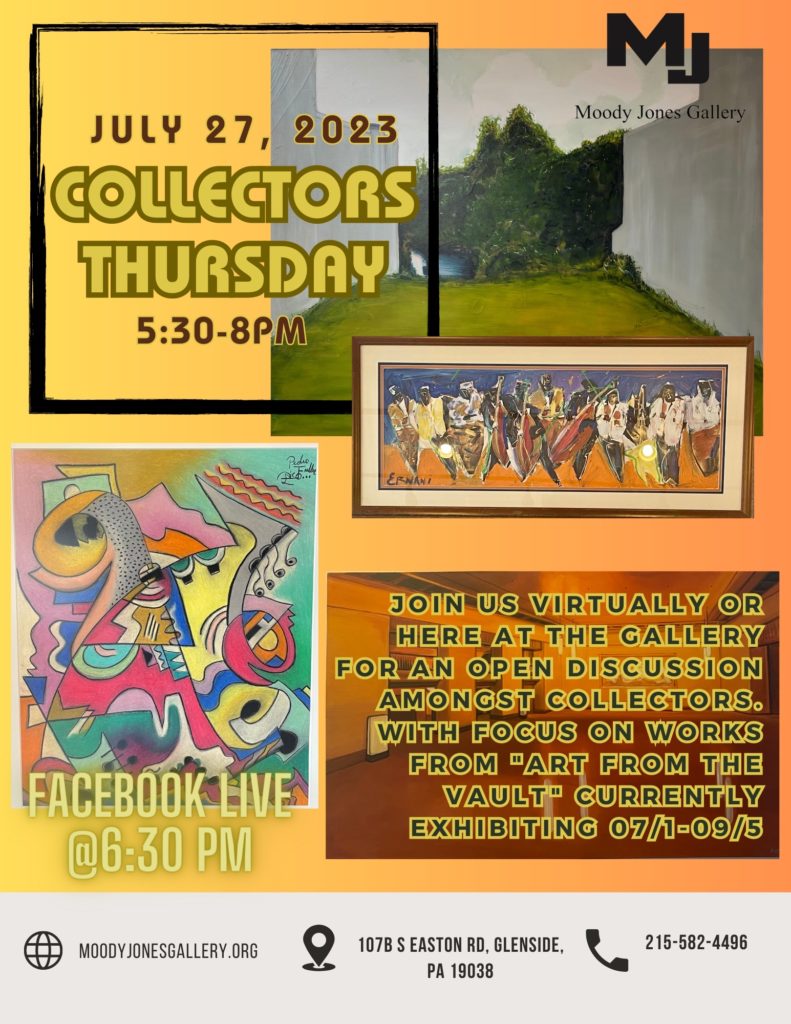 Moody Jones Gallery, located at 107b South Easton Road in Glenside, will host a “Collectors Thursday” event on Thursday, July 27 from 5:30pm to 8:00pm.