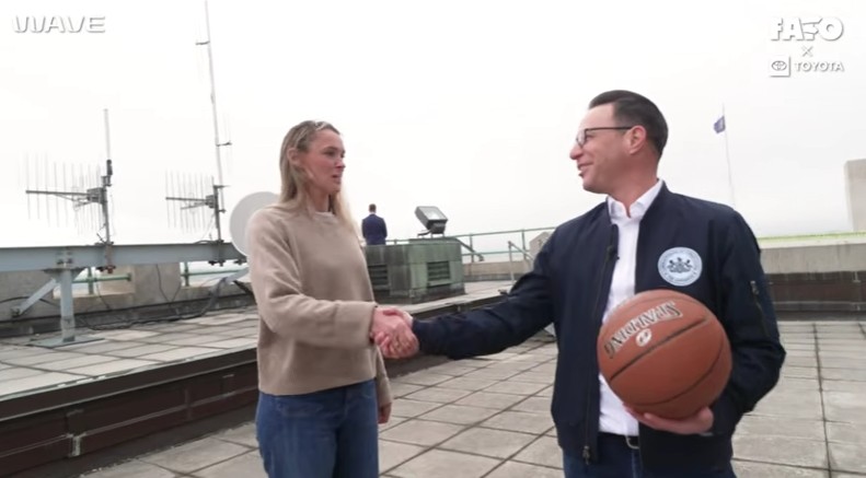 Governor Josh Shapiro recently faced off with Kylie Kelce, the popular podcaster and media personality (and wife of former Philadelphia Eagle Jason Kelce), in a “PIG-style” basketball game on the roof of the Capitol building in Harrisburg.