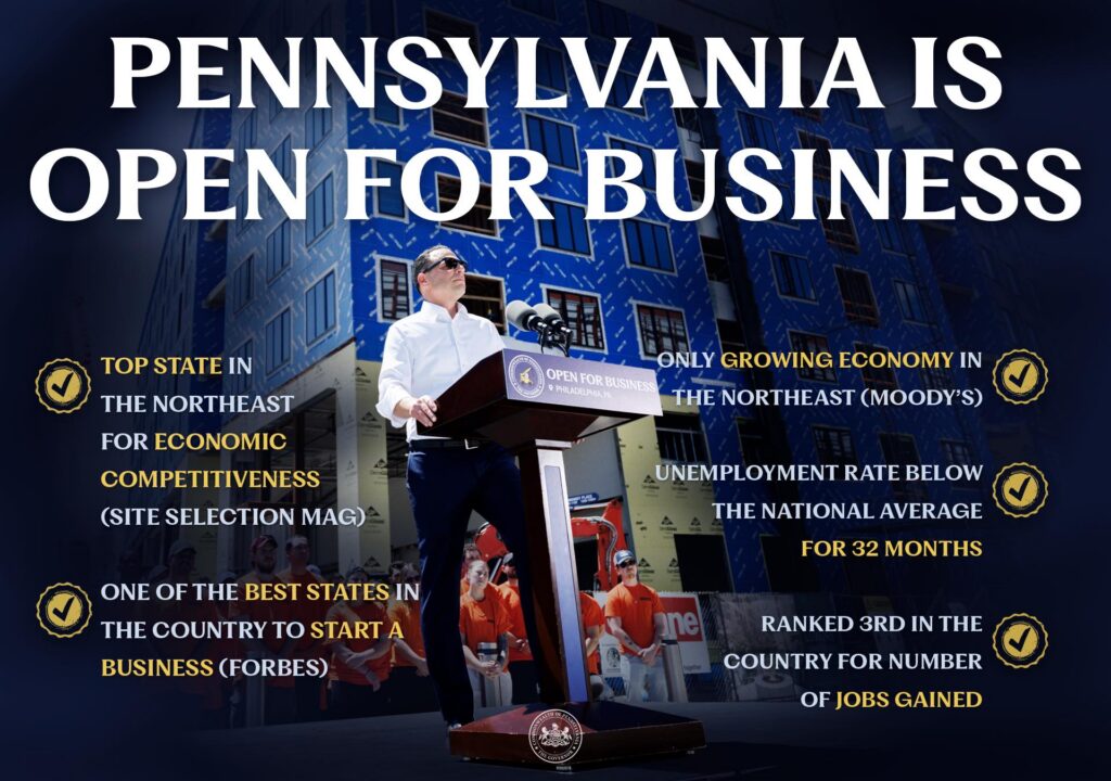 Shapiro has repeatedly emphasized that “Pennsylvania is open for business” in his discussions and social media posts, a strategy which “appears to have won over many executives,” The Inquirer wrote. At a National Governors Association event in December, he said, “When you think about getting stuff done … it requires focus and speed. We’ve gotta be speedier as a country.”