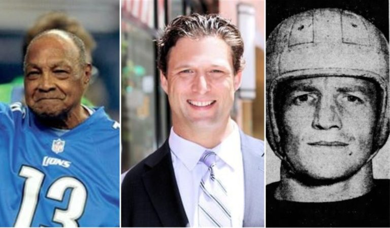 Wally Triplett (left), a 1945 CHS grad, was chosen 182nd by the Detroit Lions in the 1949 NFL Draft out of Penn State, and 1993 graduate Chad Levitt (center) was the 123rd pick by the Oakland Raiders in 1997 out of Cornell University.