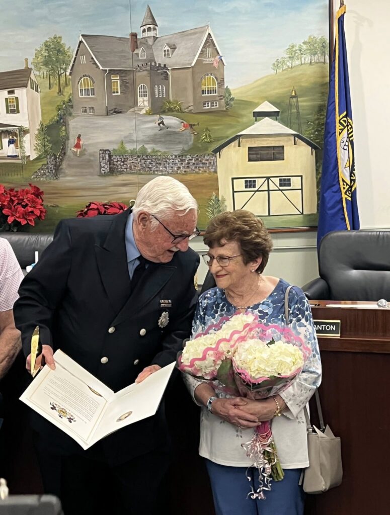 Emil Dix, a Huntingdon Valley Fire Company life member firefighter, was honored on Tuesday by the Lower Moreland Township board of commissioners for his 70th year of continuous service.