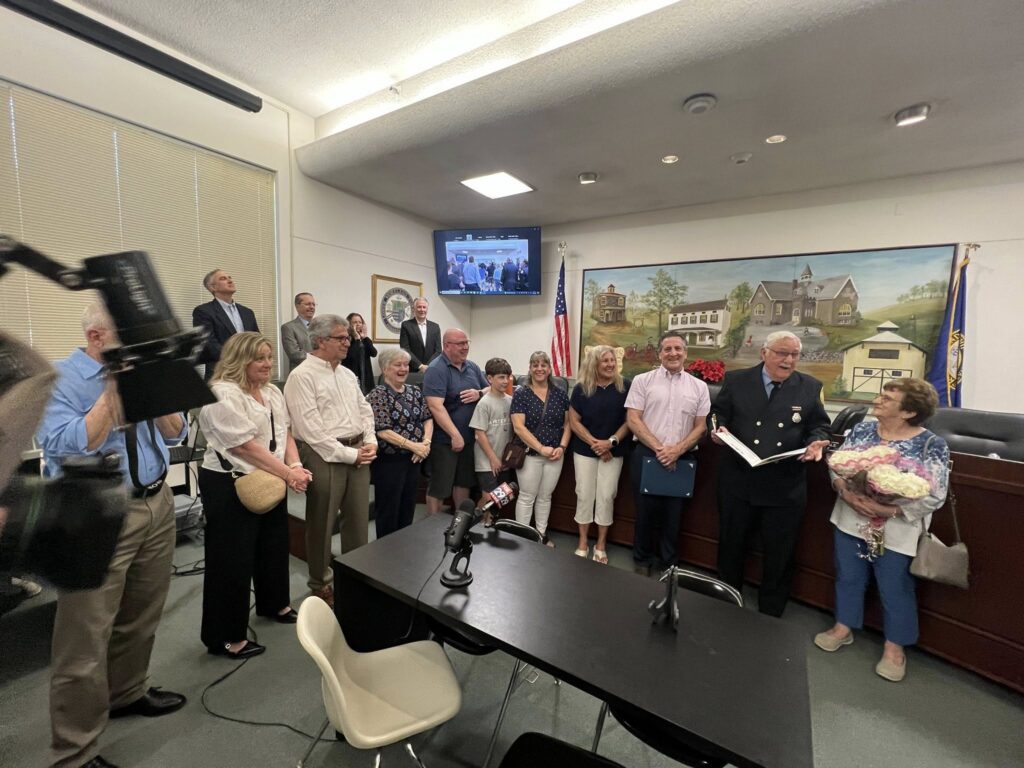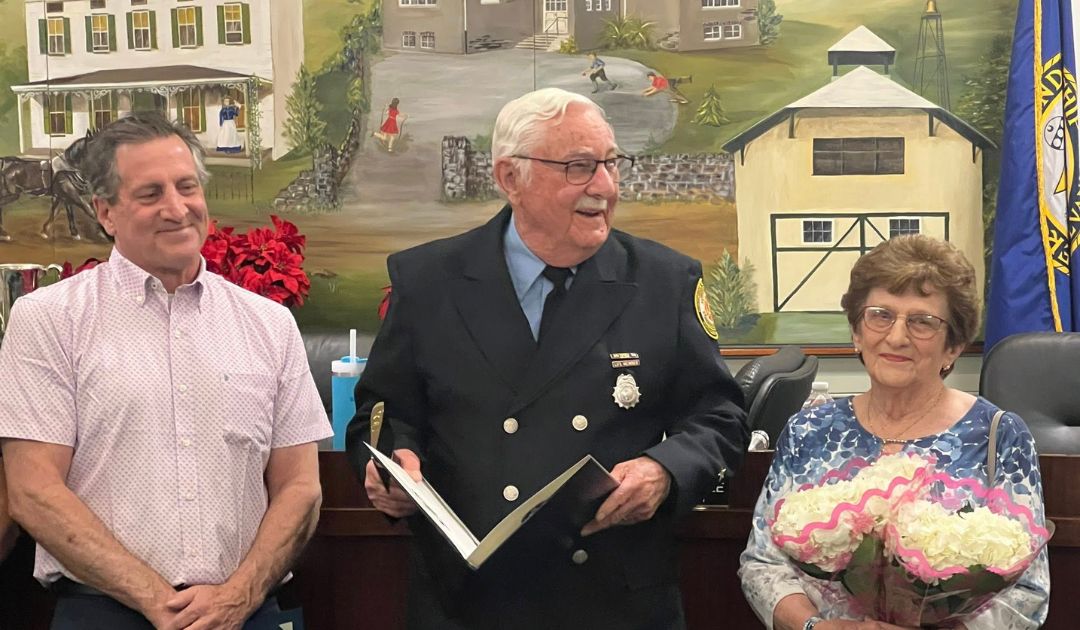 Emil is 91 years young and currently serves as our company secretary. He has been a fire fighter and fire officer until ending his active firefighting in 2005. You will see his story in Fox 29 News tonight at 10 pm, and Channel 3 News at 11 pm tonight as both stations came to cover this presentation. We thank the LM commissioners for taking the time to honor him tonight on this incredible milestone as a volunteer professional firefighter.