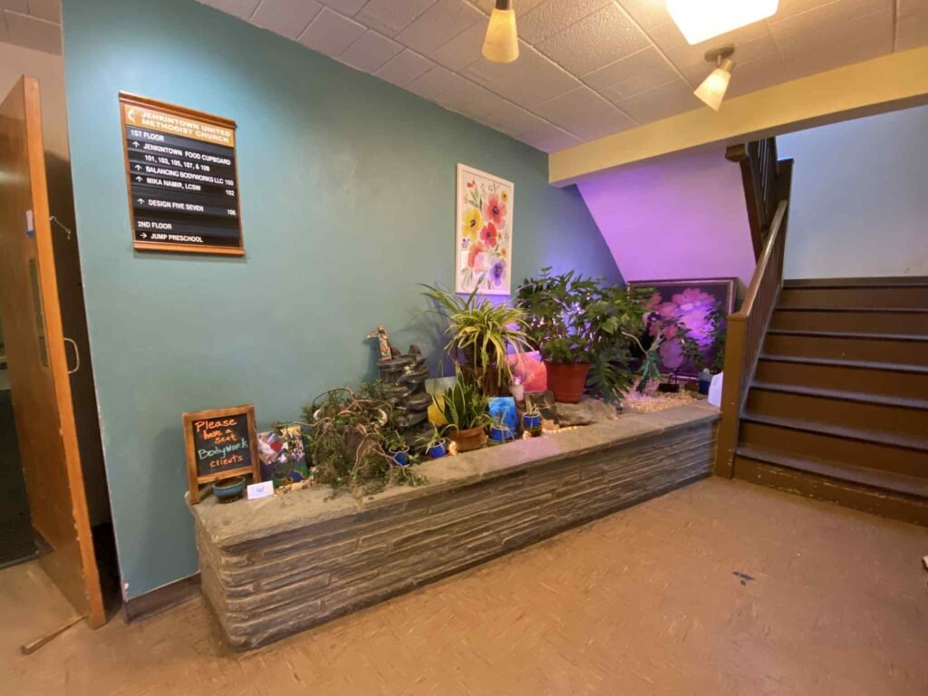 The annex of the building is rented out to tenants, some of which include the Jenkintown Food Cupboard, Balancing Bodyworks, LLC, and JUMP Preschool. Balancing Bodyworks’ owner and licensed practitioner Kathryn “Kat” Wolfe, LMT, a Huntingdon Valley native and Abington Senior High School graduate, told Glenside Local that space has become “a bit of a community hub.”