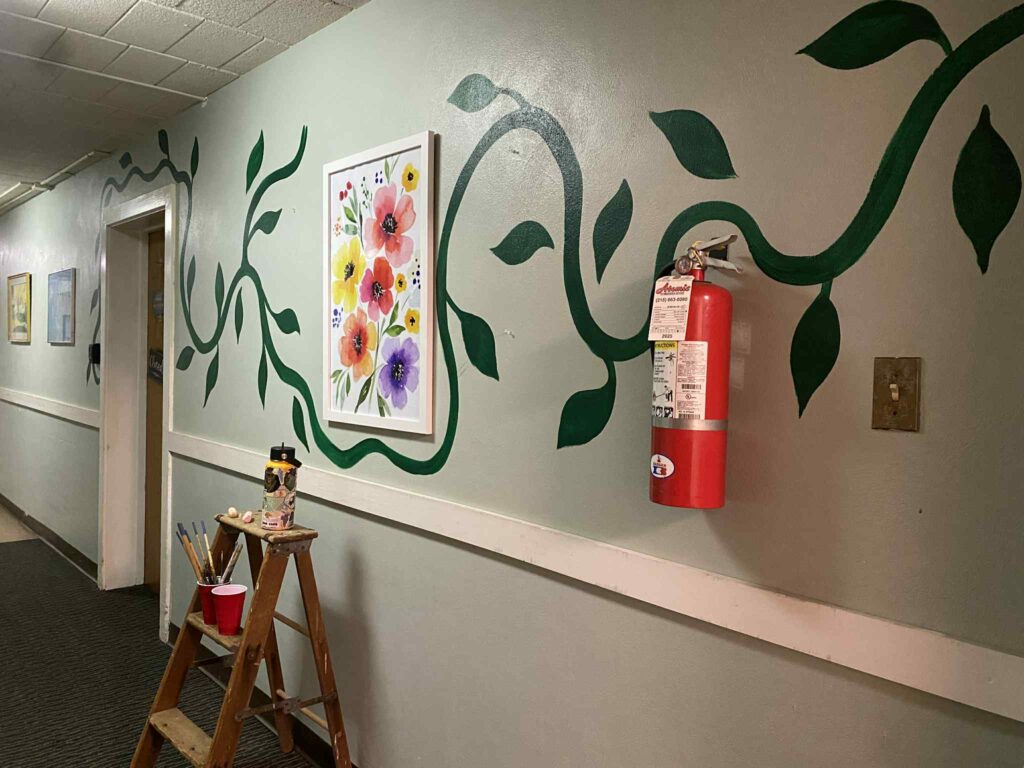 “The mural is something I was happy to participate in to help support another woman in business as well as the Jenkintown Food Cupboard,” she said. “I’m hoping that the space feel more welcoming, both for the patrons of the businesses in that building and the folks from the food pantry.”