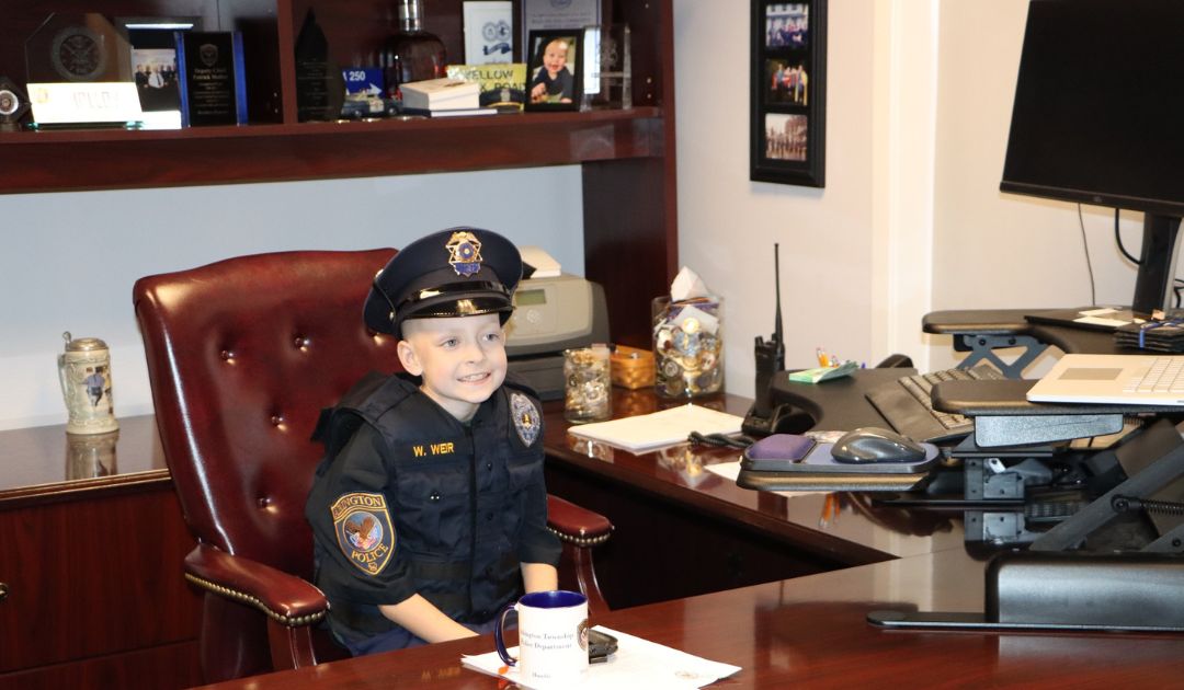 William Weir, a local eight-year-old who is battling retinoblastoma, a rare form of eye cancer, served as the Abington Township Police Department’s “Chief of the Day” on Tuesday, November 4.