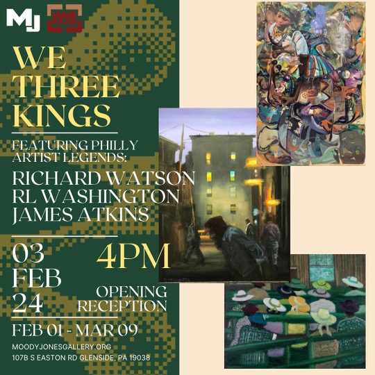Moody Jones Gallery of Glenside opens 2024 with “We Three Kings”, a new art show which celebrates the legacy of three esteemed Philadelphia artists. It will run from February 1 to March 9.