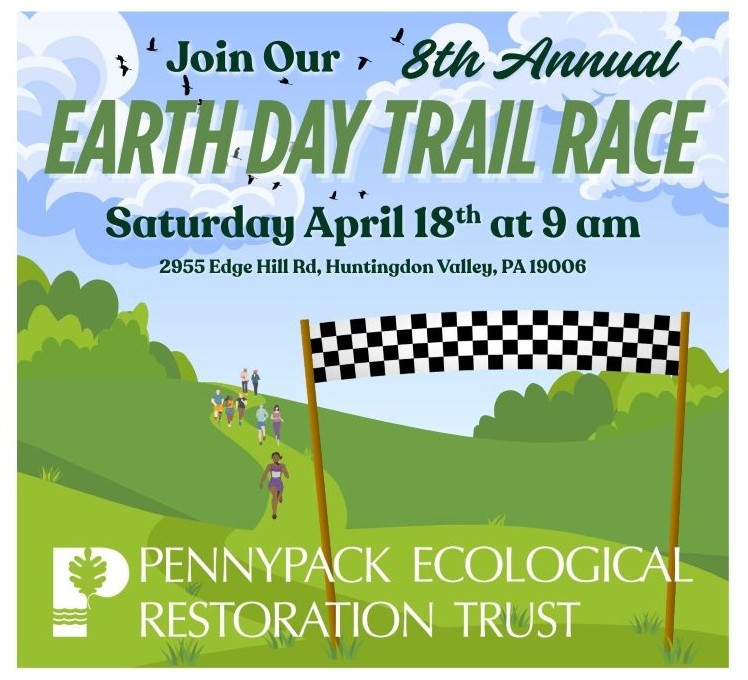 The Pennypack Ecological Restoration Trust’s eighth annual Earth Day Trail Race is scheduled for Saturday, April 18 at 9:00am at 2855 Edge Hill Road in Huntingdon Valley (Lower Moreland Township).