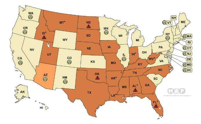 Also noted in the article are the states which have blocked access to similar orders. For more information, you can see the map below or visit LGBTMap.org.