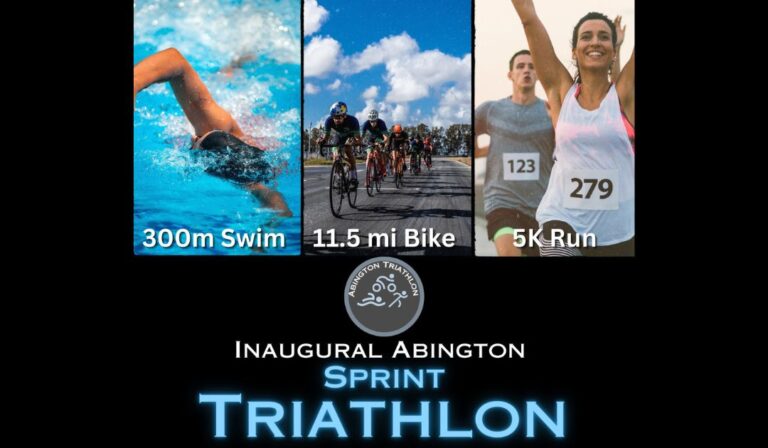 The day will kick off with a 300-meter swim in Abington High School’s heated pool, followed by a 11.5-mile closed bike course through Abington, and finish with a 5K run across the Abington High School and Middle School Campuses.