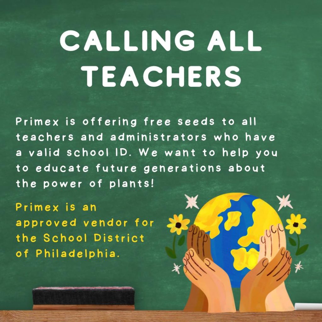 Primex Garden Center is offering free seeds to teachers, administrators, and school personnel who have a valid school ID.