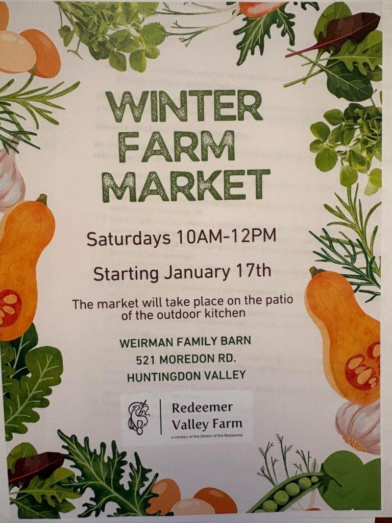 Redeemer Valley Farm, located at 521 Moredon Road in Huntingdon Valley (Lower Moreland Township), is hosting the first Winter Market of the season on Saturday, January 17 from 10:00am – 12:00pm on the patio of the outdoor kitchen at the Weirman Family Barn.
