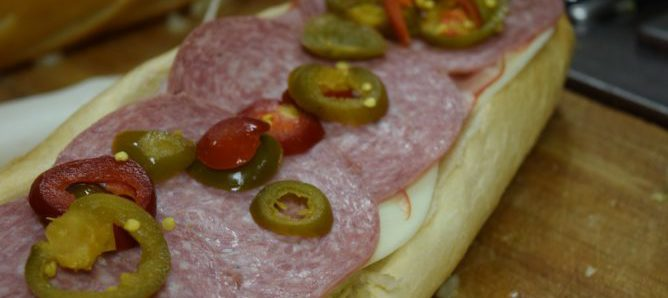 Located adjacent to Germantown Academy and next to the Fort Washington train station, the deli’s interior is decorated with local high-school banners, newspaper clippings of high school sports legends, photos of Rich’s two sons, and Philadelphia sports paraphernalia, including a seat salvaged from Veteran’s stadium.