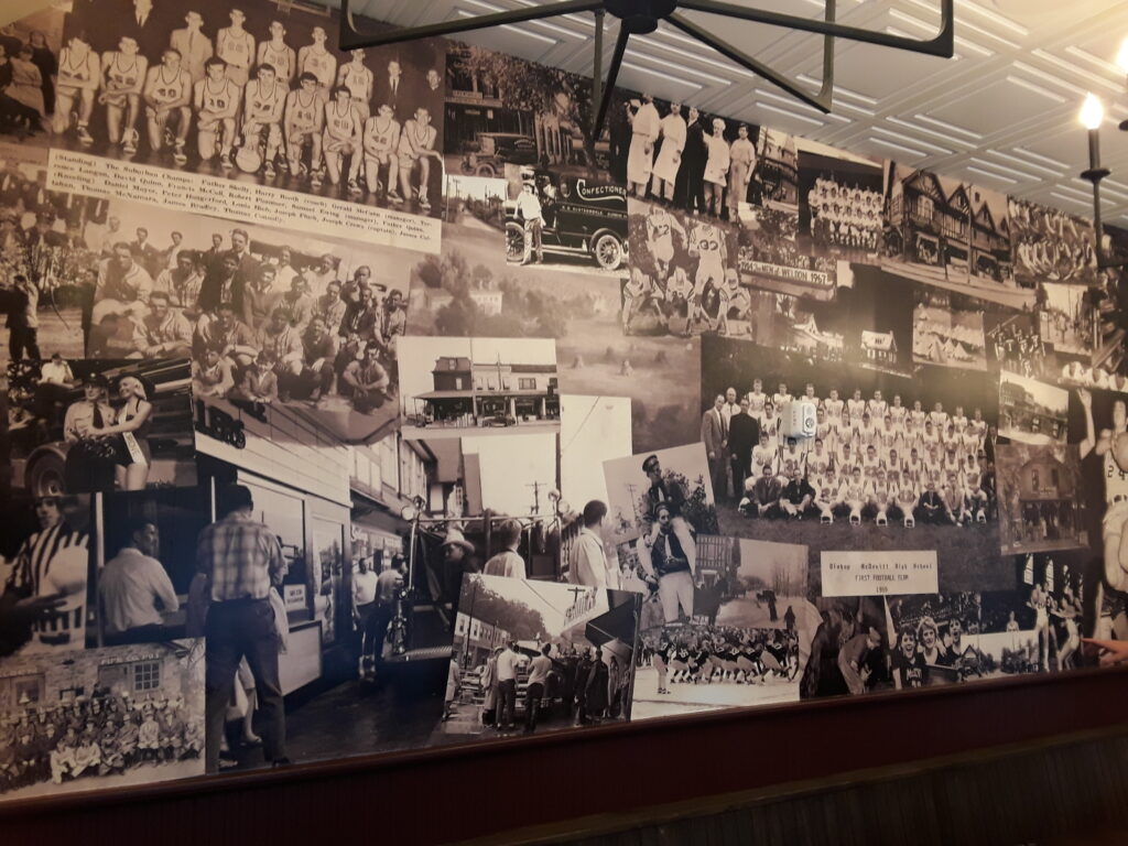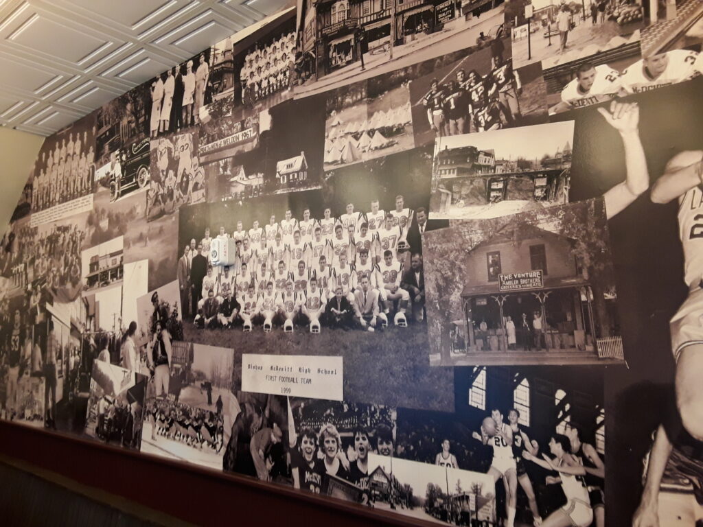 Signage, dark doors and maroon awnings now line the building’s exterior. The bar, tables, and countertops are ready to go, and a backroom dining area’s wall is covered with vintage photos courtesy of Friends of Bishop McDevitt, La Salle College High School, and Glenside Weldon Fire Department.