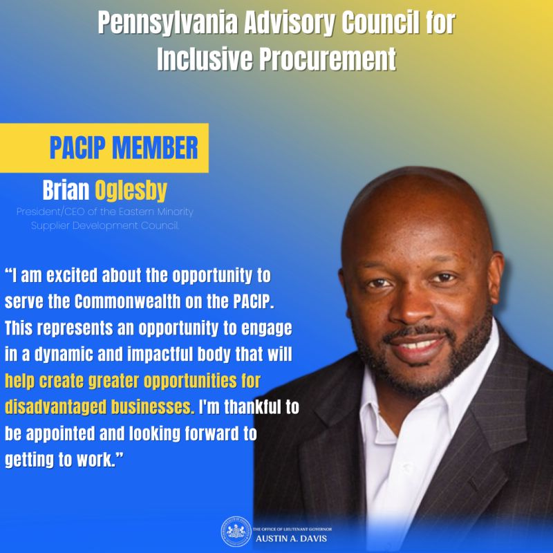 Oglesby also received an appointment to the Pennsylvania Advisory Committee on Inclusive Procurement (PACIP). Created by Pennsylvania Governor Josh Shapiro through executive order in September 2023, the PACIP intends to “increase and open new doors for small and small diverse businesses to compete for state contracts.”