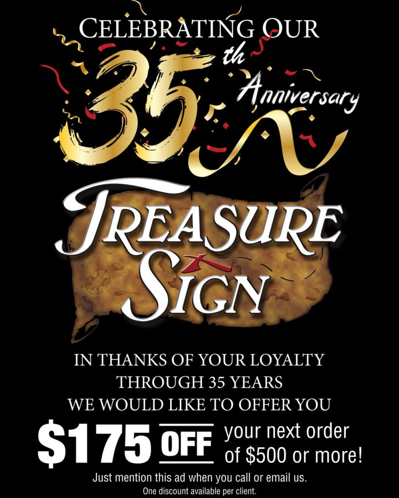 Treasure Sign, a sign design, fabrication, and installation outfit in the Willow Grove Shopping Center, is celebrating its 35th anniversary this year.