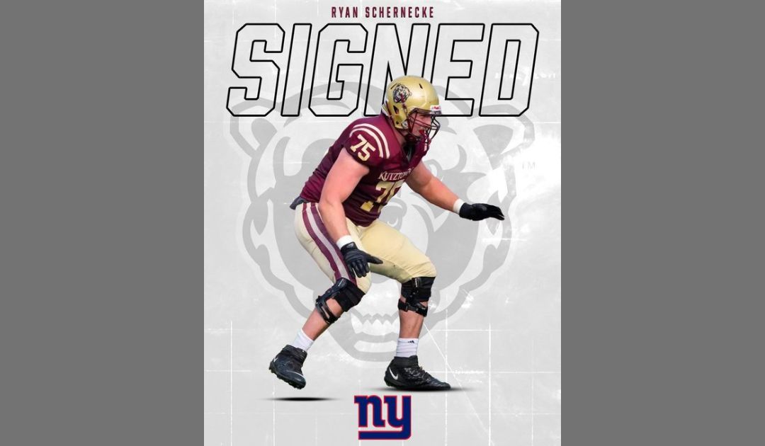 Ryan Schernecke, a Hatboro native, Upper Moreland High School graduate, and a one-time All-American offensive tackle for the Kutztown University football team, has signed a professional contract with the New York Giants, Sports Illustrated reported today.