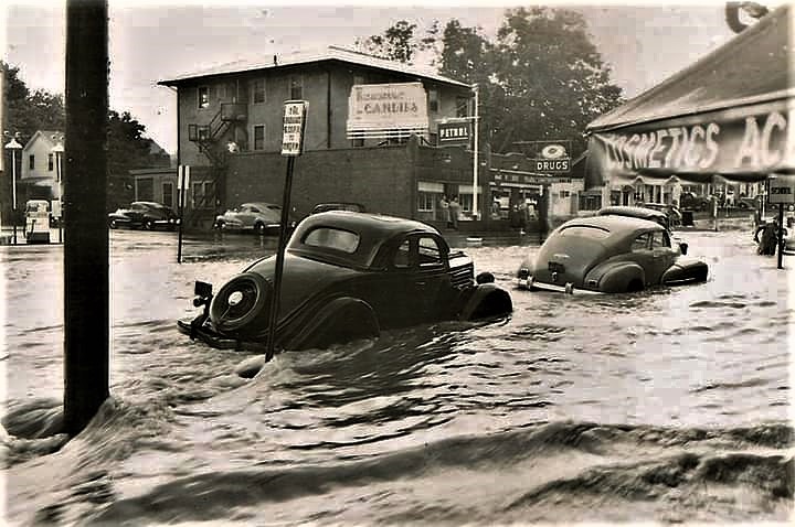 Keswick Avenue and Easton Road, ca. 1950s(?). I couldn’t find any info on a flood, but the first flood image looks to be Easton Road looking South. The 2nd flood image is from the corner store (see “Candy” in the first photo) looking NW. The building in the 2nd image is still there next to the 7-11 (https://maps.app.goo.gl/UMFrLd9otkcdgZcN8). The third image is looking SE along Keswick Ave. in front of the Keswick Theater. I had no idea there was a trolley line through there – does anyone know where it originated and where it went? Did this wind it’s way up Easton Road to the terminus at Willow Grove Park?